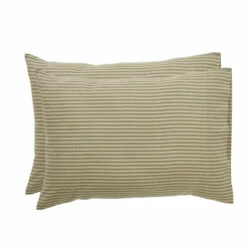 Best Sale π€© VHC Brands Prairie Winds Green Ticking Stripe Pillow Case Set Khaki/sage Green π