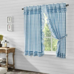Brand new π VHC Brands Annie Buffalo Blue Check Ruffled Short Panel Set Of 2 63×36 π