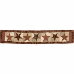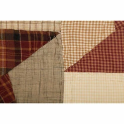 - 5-Point stars in assorted burgundy fabrics trail the center surrounded with coordinating patchwork block border