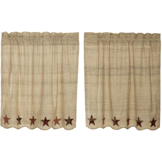 - Appliqued 5-point stars with frayed edges in assorted burgundy plaids