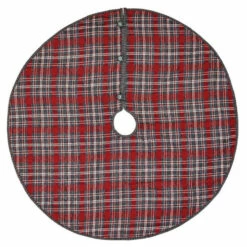 - Cherry red, iron grey, and white textured woven plaid fabric