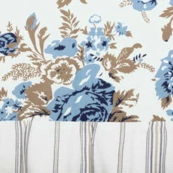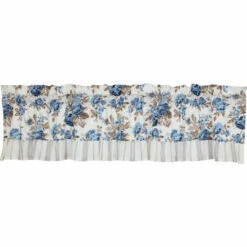 Brighten up your windows with cozy elegance and vintage charm. Our Annie Blue Floral Ruffled Valance Curtain 16×72 features an eye-catching floral print in calming colors of dusk blue, soft white, and portabella brown. Gracefully trimmed with ruffles for added texture and charm. This farmhouse kitchen curtain is finished with a white cotton lining to help filter light.