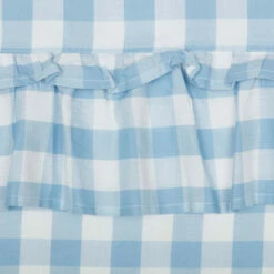 Capture the essence of relaxed, cozy cottage charm in your washroom with our Annie Blue Buffalo Check Ruffle Shower Curtain 72×72. Classic buffalo check in dusk blue and soft white grace this decorative curtain finished with a delicate ruffle at the top and bottom for a touch of elegance. Easily hang this bath curtain with shower hooks of your choosing (not included) using the button holes attached. A 3″ rod pocket is also available as an alternative hanging method.
