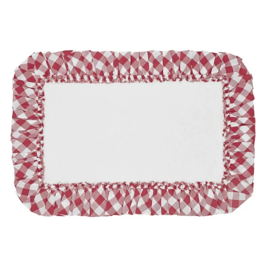 Add a farmhouse touch to your bath or living space with the Annie Buffalo Red Check Bath Mat. This comfortable 20×30 mat showcases beautiful concentric hues of red and soft white. With a ruffled edge, ruched ruffle, and tufted weave, this check bath mat will find a place in your home for years to come. Reverses to a solid tan rubber underside to prevent slippage.