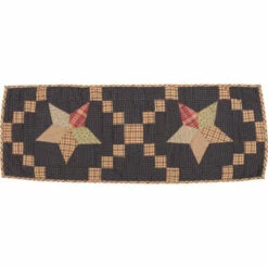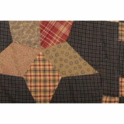 - Traditional 5-point star and Irish chain patchwork with primitive navy microplaid base and creme, tan, and barn red plaids