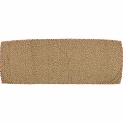 - Straight edge with .5″ bias cut burgundy, tan, and navy plaid binding
