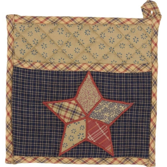 - Appliqued 5-point star in various barn red, tan, and navy plaid fabrics