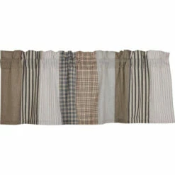 Our Ashmont Patchwork Valance takes our innovative patchwork design from our Ashmont Quilt to update your windows with a timeless farmhouse look. A bold mixture of classic stripes and plaid patterns are beautifully pieced together on soft, 100% cotton, featuring a mixture of warm grey, vintage white, and washed blue. This 19×60 valance lends relaxed vintage appeal when decorating your farmhouse bedroom, living room, dining room, or kitchen. Finished with a 3.25-inch diameter rod pocket and hanging loops for two easy installation and style options.