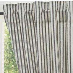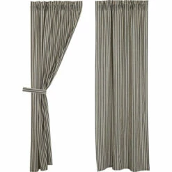 Classic and timeless, our Ashmont Stripe Panel Set 84×40 helps bring your farmhouse-inspired vision to life. Perfect for any season, these 100% cotton curtains feature a vintage white base with charcoal grey and warm grey ticking stripes. This refreshing window treatment coordinates effortlessly with our Ashmont bedding collection for a complete look in your country-style bedroom. Give your curtains a simple refresh and let in natural light with our matching cloth tie-backs included.
