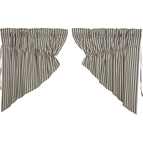 Classic and timeless, our Ashmont Stripe Prairie Swag Set 36x36x18 helps bring your farmhouse-inspired vision to life. Perfect for any season, these 100% cotton curtains feature a vintage white base with charcoal grey and warm grey ticking stripes. This refreshing window treatment coordinates effortlessly with our Ashmont bedding collection for a complete look in your country-style bedroom. Give your curtains a simple refresh and let in natural light by simply using the drawstring ties attached.