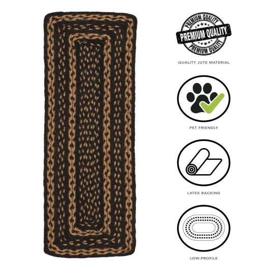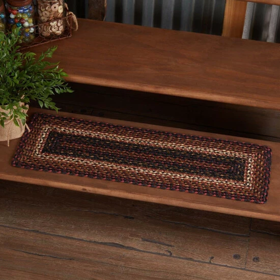 PRIMITIVE FARMHOUSE STYLE Brick red, country black and dark tan make this jute stair tread a beautiful Americana color scheme add to any home decor