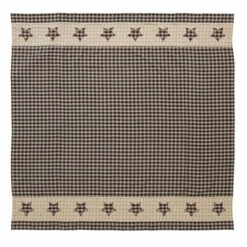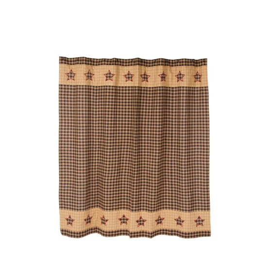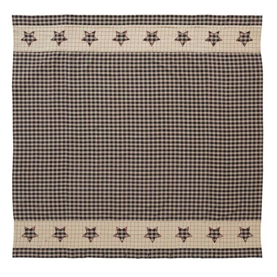 - Tan and burgundy windowpane check strip with appliqued plaid 5-point stars along both top and bottom