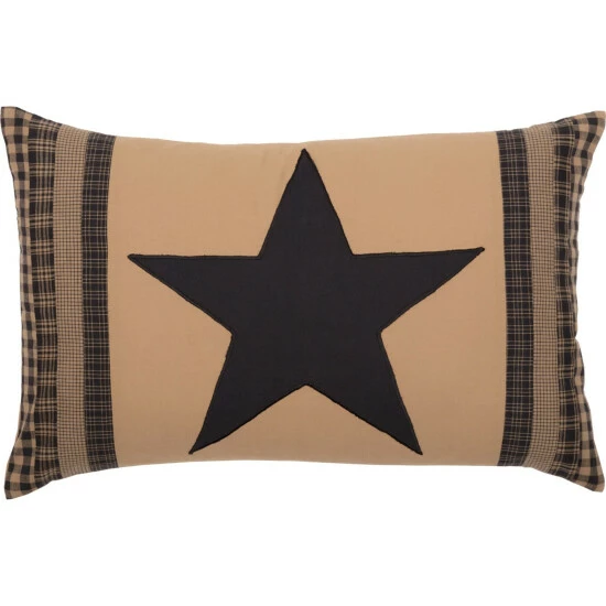 - 5-POINT STAR: This decorative pillow contains a solid tan cotton fabric with large appliqued black 5-point star in center