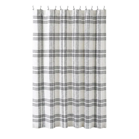 PREMIUM CONSTRUCTION: Our high-quality pieces are built to last for years to come. Our 100% cotton traditional plaid shower curtain is expertly machine-stitched and carefully lined with soft cotton. Features a straight-edged, textured woven weave and a 3-inch rod pocket for hanging. A plastic liner is recommended to keep your primitive shower curtain in top condition.,FARMHOUSE DECOR: With over two decades of experience crafting goods for American homes, our items are built to last for years to come. Features a traditional style that compliments any farmhouse or cottage-style home.,COORDINATING ACCESSORIES: Pair this farmhouse shower curtain with matching throws, shams, pillows, panels, and valances from the Black Plaid collection.,EASY CARE: To give your textured cotton shower curtain as many years of quality comfort as possible, place it in the wash on a gentle cycle, and afterward tumble dry low. If you want to capture the true essence of farmhouse living, let this cottage-style shower accessory hang dry on a line. The 100% cotton fabric is safe to iron for your convenience.,SIZE: Soft black and white hues give this shower curtain a modern cottage feeling while keeping to a farmhouse design. The generous size of 72×72 inches is tailored to fit with any traditional shower in your home.