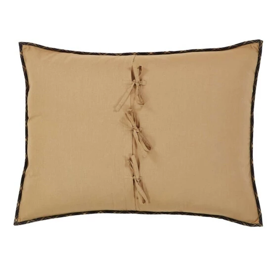 - Straight edge with .5″ bias cut black and tan plaid binding