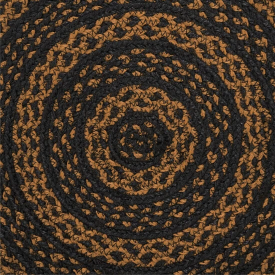 PRIMITIVE CHAIR PAD: Our Black & Tan Jute 15 inch Chair Pad features alternating solid and mixed braids in a neutral color palette.