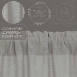 Create a timeless vintage appeal in your comfortable abode with our Burlap Dove Grey Panel Set 84×40. Crafted with our soft cotton burlap and finished with a standard hem fold at the bottom, this grey curtain set brings a relaxed, rustic ambiance to any living room, dining room, family room, or guest bedroom while adding warmth and welcome to your windows. Change up the look and let in natural light with the matching tie-backs. This vintage curtain set can be gently machine washed and ironed for easy convenience.