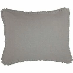 Displaying exceptional versatility, the Burlap Dove Grey Standard Sham with Fringed Ruffle provides neutral elegance that complements a variety of decorative styles. Made from our soft cotton burlap, this 21×27 unique sham has both a fringe and a ruffle that creates vintage interest. Transform your ordinary pillows with these classy covers and place them anywhere in your home to add warmth. The wooden buttons can be displayed at the front to create layered interest or use the solid side for cozy simplicity. Machine washable and iron safe, it has a 100% cotton shell with a durable polyester lining.