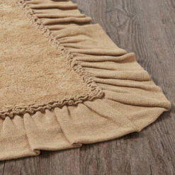 Add a country cottage flair to your bath or living space with the Burlap Natural Bath Mat. This beautiful natural tan 20×30 comfortable mat adds farmhouse charm to your decor. With a ruffled edge, ruched ruffle, and tufted weave, this solidly colored bath mat will find a place in your home for years to come. Reverses to a solid tan rubber underside to prevent slippage.