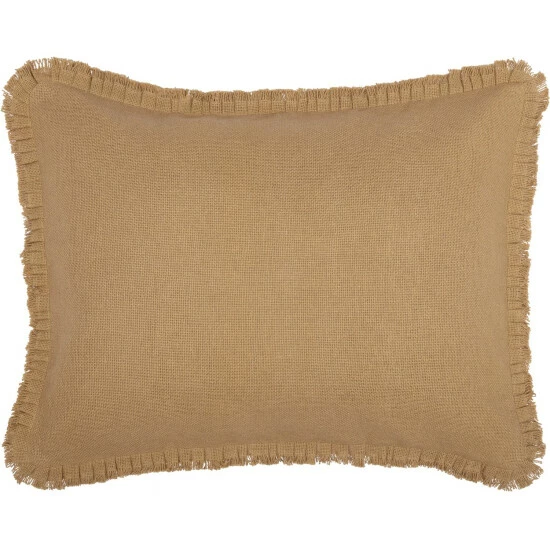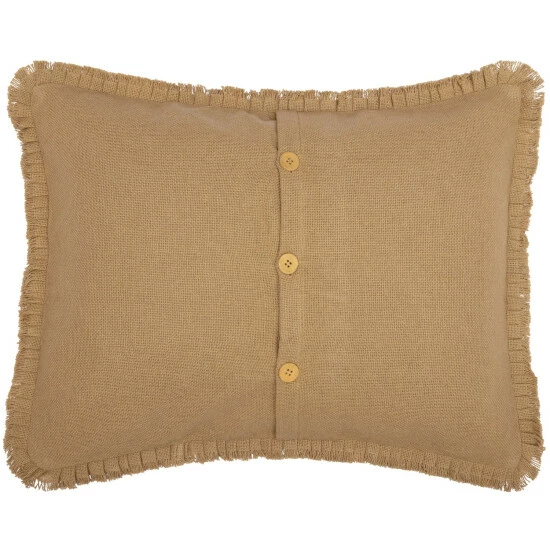 Displaying exceptional versatility, the Burlap Natural Standard Sham w/ Fringed Ruffle provides neutral elegance that complements any style. Made from our soft cotton burlap, this 21×27 unique sham has both a fringe and a ruffle that creates vintage interest. Transform your ordinary pillows with these classy pillow covers and place anywhere in your home to add warmth. The wooden buttons can be displayed at the front to create layered interest or use the solid side for cozy simplicity. Machine washable and iron safe, it has a 100% cotton shell with a durable polyester lining.