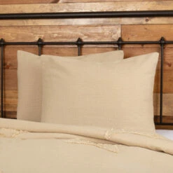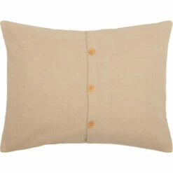 Our Burlap Vintage Standard Sham adds a rustic, vintage appeal to any room in your primitive, farmhouse, shabby chic, or country style home. This unique 21″ x 27″ pillow cover is made from our loose weave cotton burlap in a light beige that will not leave you itchy like regular burlap. The wooden buttons that secure the pillow sham can be displayed for vintage farmhouse charm or use the solid side to create neutral simplicity. This cotton sham can be gently machine washed and is iron-safe. 100% cotton burlap with dyed polyester lining.