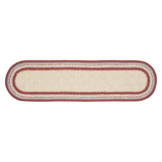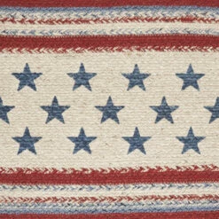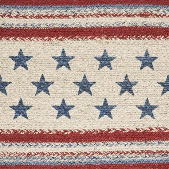 AMERICANA RUNNER: Our Celebration Jute 13×48 inch Oval Runner features alternating solid and mixed braids in a patriotic color palette with stenciled blue stars in the center.,TEXTURED MATERIAL: The single runner is crafted with 80 percent jute and 20 percent other fibers; the tighter weave allows it to lay flatter once the item is unpackaged.,PROTECTS SURFACES: Unique fiber and braiding protect surfaces from heat, scratches, and condensation.,EASY TO CLEAN: To give your jute runner as many years of quality comfort as possible, carefully spot clean when dirty.,COORDINATING ACCESSORIES: Pair this Americana runner with matching other matching tabletop and rugs from the Celebration collection.