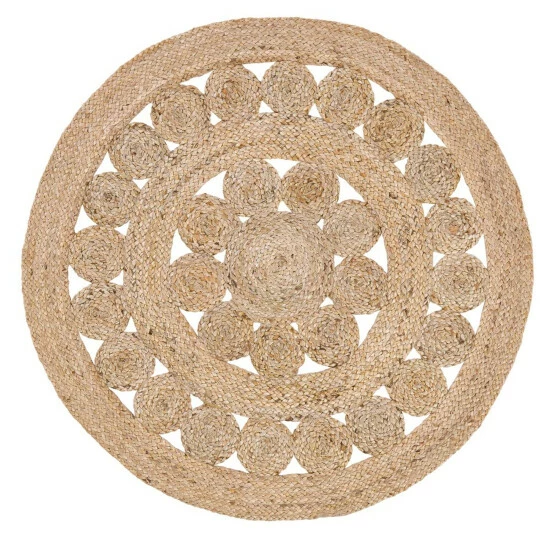 - BRAIDED JUTE: alternating rows of solid and circular braided natural jute.