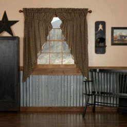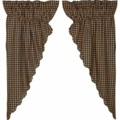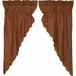Checks are blended with faded texture at points of intersection to give a modern facelift to the classic pattern on the Burgundy Check Scalloped Prairie Curtain Set.Β