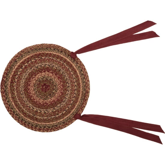 - BLENDED WARMTH: This braided chair pad contains concentric, mixed braids of burgundy, natural, black, and olive green