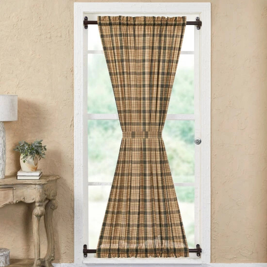 PREMIUM CONSTRUCTION: Our panels are built to last for years to come with durable machine-stitched 100% cotton. Features include white cotton lining and a 3.25-inch rod pocket for easy hanging, and 1 matching tie-back.,PRIMITIVE DECOR STYLE: Traditional handcrafted style that compliments any primitive or country home. This Plaid Door Panel features slub weave fabric combined with khaki, green, and russet brown hues for a timeless country appeal.,COORDINATES: Pair this primitive door panel with our many matching accessories, tabletop items, and rugs from the Cider Mill collection.,EASY CARE: To give your cotton door panel as many years of quality comfort as possible, simply place it in the wash on a gentle cycle, and afterward tumble dry low. If you want to capture the true essence of primitive living, let this country-style door panel hang dry on a line. The 100% cotton fabric is safe to iron for your convenience.,SIZE: Neutral khaki, green, and russet brown hues give this door panel a modern primitive feel while keeping to a country design. The generous size of 72×40 inches is tailored to fit in almost any traditional window of your home.