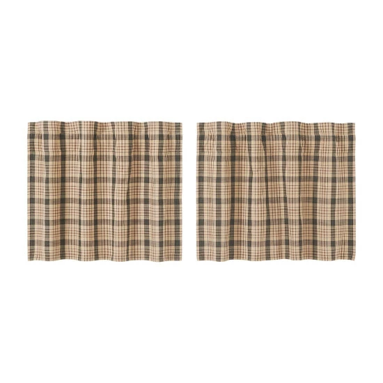 The Cider Mill Plaid Tier Set of 2 brings warmth to your living area with primitive colors and a cozy design. This set of 2 tiers features rich russet brown, green, and khaki with a straight-edged, textured slub weave. Our L24xW36 tiers are finished with convenient hanging loops that add primitive appeal to your kitchen or living room.