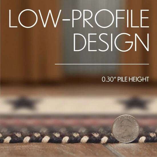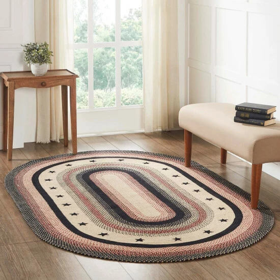 PRIMITIVE STYLE Comes in a natural tan intermingled with country black and bright red, featuring a colonial star applique to make the perfect cozy addition to your country decor