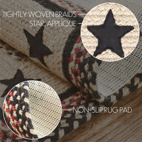 PRIMITIVE STYLE Comes in a natural tan intermingled with country black and bright red, featuring a colonial star applique to make the perfect cozy addition to your country decor