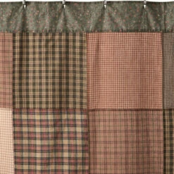 PREMIUM CONSTRUCTION: Our high-quality pieces are built to last for years to come. Our 100% cotton traditional patchwork plaid square shower curtain is expertly machine-stitched and carefully lined with soft cotton. Features a ruffled edge flat weave and a 3-inch rod pocket for hanging. A plastic liner is recommended to keep your shower curtain free from water stains.,PRIMITIVE DECOR: With over two decades of experience crafting goods for American homes, our items are built to last for years to come. Features a traditional style that compliments any primitive or country home.,COORDINATES: Pair this primitive shower curtain with our many matching accessories, tabletop items, and rugs from the Crosswoods collection.,EASY CARE: To give your cotton shower curtain as many years of quality comfort as possible, simply place it in the wash on a gentle cycle, and afterward tumble dry low. If you want to capture the true essence of primitive living, let this country-style shower accessory hang dry on a line. The 100% cotton fabric is safe to iron for your convenience.,SIZE: Neutral dark green, russet brown, and khaki hues give this square shower curtain a modern primitive feel while keeping to a country design. The generous size of 72×72 inches is tailored to fit with any traditional shower in your home.