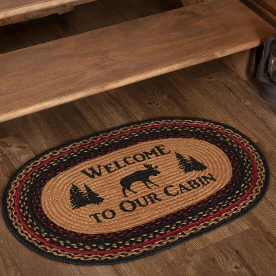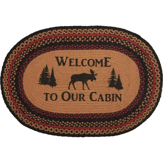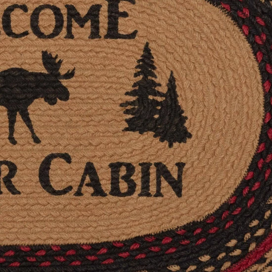 Enter the home in cozy, warm ambiance with the welcoming Cumberland Moose Jute Rug. Our rustic jute rug captures the look that lovers of log cabin living truly relish with beautifully colored braids along with a neutral center that proudly states “Welcome To Our Cabin”. The stenciled silhouettes of a moose and cedar trees add a woodsy feeling to this indoor rug. Place in the kitchen, entryway, living room, dining room, bedroom, or any area that needs a cozy, textured rug. This durable rug includes a separate 100% PVC rug pad for non-slip quality.