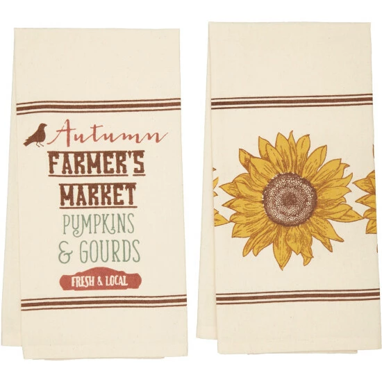 - SEASONAL FARMHOUSE DECOR: Bring fall-inspiration into your home with these tea towels. Mix and match with other pieces in our Farmer’s Market Collection for a complete look this fall season.