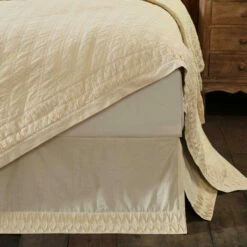 - Box-pleated white cotton cambric fabric with 16″ drop