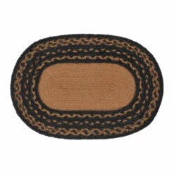 PRIMITIVE DECOR PLACEMAT: Our Farmhouse Star Jute 12×18 inch Oval Placemat features alternating solid and mixed braids in a classic country color palette with black appliqued stars.,TEXTURED MATERIAL: The single placemat is crafted with 80 percent jute and 20 percent other fibers; the tighter weave allows it to lay flatter once the item is unpackaged.,PROTECTS SURFACES: Unique fiber and braiding protect surfaces from heat, scratches, and condensation.,EASY CARE: Due to its handmade nature, carefully spot clean with warm water as needed.,COORDINATING ACCESSORIES: Pair this primitive placemat with matching runners, coasters, and more from the Farmhouse Star Jute collection.