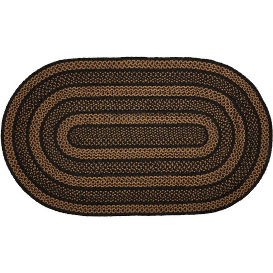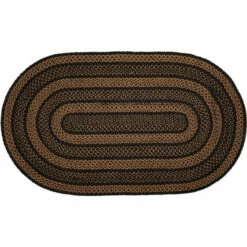 The Farmhouse Jute Oval Rug makes a textured primitive addition to your home decor. This 27″x48″ rug showcases beautiful concentric braids of black and dark tan. Durable machine stitching holds the braiding together even with the increased wear and tear from constant use. Reverses to the same as front. Includes a separate 100% PVC rug pad that works on most floor types for non-slip quality.