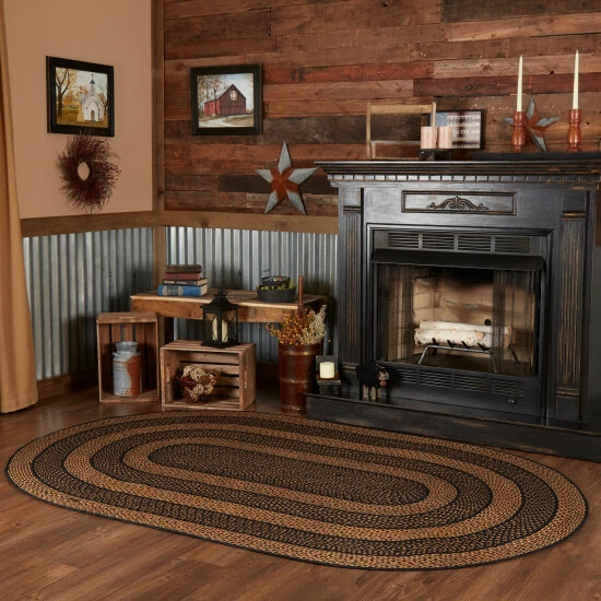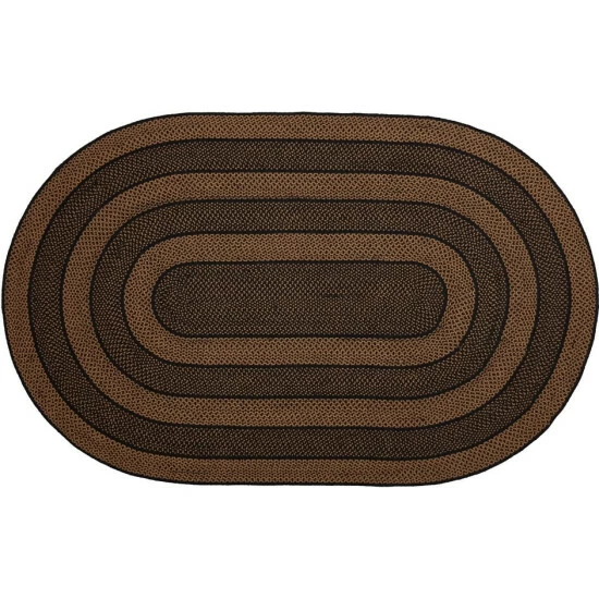 The Farmhouse Oval Jute Rug makes a textured primitive addition to your home decor. This 60″x96″ rug showcases beautiful concentric braids of black and dark tan. Durable machine stitching holds the braiding together even with the increased wear and tear from constant use. Reverses to the same as front. Includes a separate 100% PVC rug pad that works on most floor types for non-slip quality.