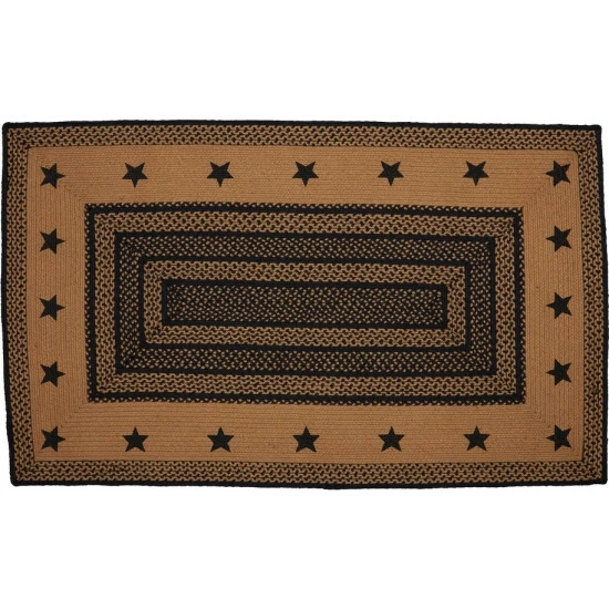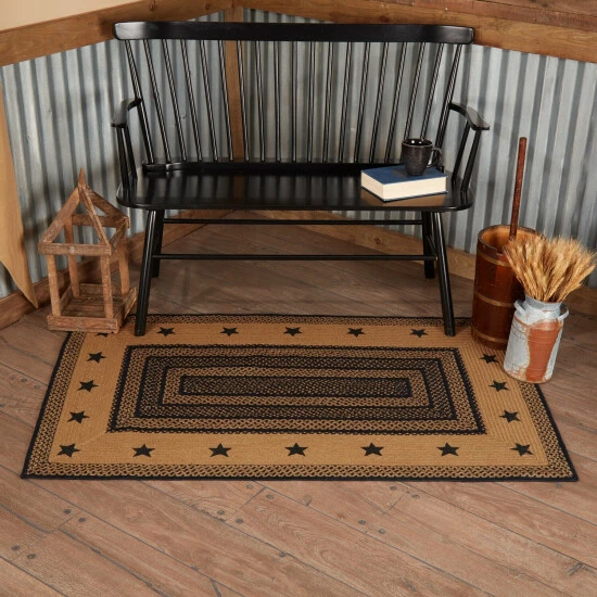 The 36″x60″ Farmhouse Jute Rug w/ Stenciled Stars is ready for your home, retreat, or cabin with its durable and beautiful construction. Featuring alternating braids in black and dark tan with stenciled 5-point stars in the center for years of enjoyment. Includes a separate 100% PVC rug pad that works on most floor types for non-slip quality.