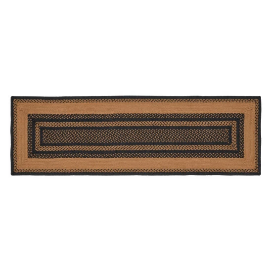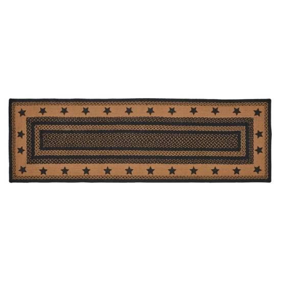 PRIMITIVE RUG: Our Farmhouse Star Jute 24×78 inch Rug features alternating solid and mixed braids in a classic country color palette with black appliqued stars.