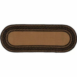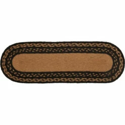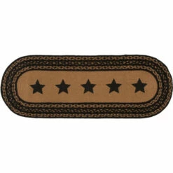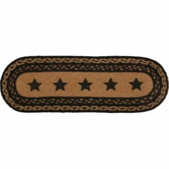 - 5-POINT STAR: This table runner contains five solid black stenciled 5-point stars across center, accented with solid and mixed outer border braids in black and dark tan
