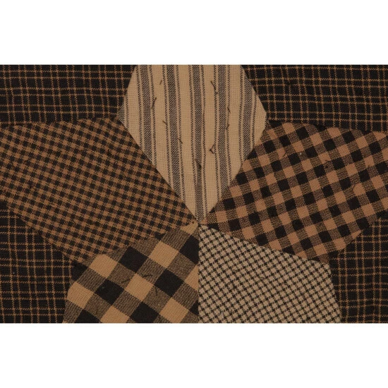 - Straight edge with .5″ bias cut black and tan microcheck binding