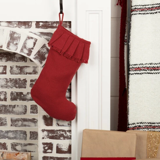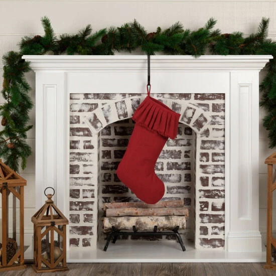 - Features 2.5″ barn red burlap hanging loop