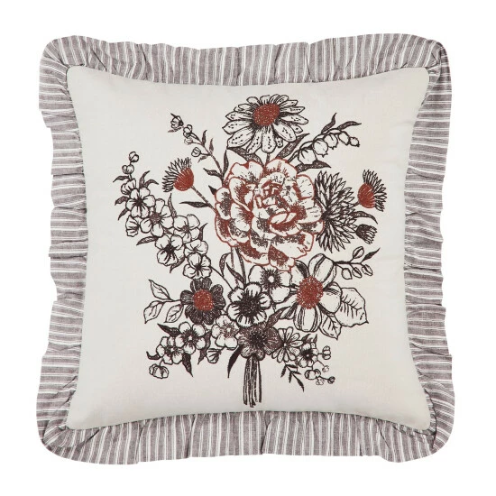 PREMIUM CONSTRUCTION: Our 100% cotton traditional floral pillow is expertly crafted using a unique, yet durable weave paired with ruffled edges and button closures to ensure high-quality for years to come. The pillow expands when unpackaged to create a fuller appearance.,FARMHOUSE DECOR: Traditional handcrafted style that compliments any farmhouse or French country home. Our pillow features white, coffee brown, and red colors with a farmhouse floral design. Reverses to a striped pattern for an additional French country decor option.,COORDINATING ACCESSORIES: Pair this farmhouse pillow with matching bed skirts, shams, quilts, panels, and valances from the Florette collection.,EASY CARE: To give your canvas cotton pillow as many years of quality comfort as possible, place it in the wash on a gentle cycle, and afterward tumble dry low. If you want to capture the true essence of farmhouse living, let this country-style pillow hang dry on a line. The 100% cotton fabric is safe to iron for your convenience.,SIZE: Neutral white, coffee brown, and red hues give this pillow a modern farmhouse feeling while keeping to a french country design. The generous size of 18×18 inches is tailored perfectly to fit in any area of your home.