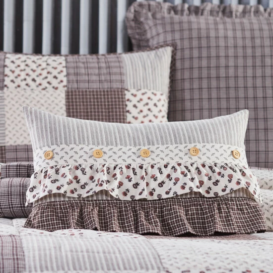 PREMIUM CONSTRUCTION: Our 100% cotton traditional ruffled pillow is expertly crafted using a unique yet durable flat weave paired with straight edges and button closures to ensure high quality for years to come. The pillow expands when unpackaged to create a fuller appearance.,FARMHOUSE DECOR: Traditional handcrafted style that compliments any farmhouse or french country home. Our pillow features white, coffee brown, and red colors with a farmhouse stripe design. Reverses to a striped pattern for an additional french country decor option.,COORDINATING ACCESSORIES: Pair this farmhouse pillow with matching bed skirts, shams, quilts, panels, and valances from the Florette collection.,EASY CARE: To give your cotton pillow as many years of quality comfort as possible, place it in the wash on a gentle cycle, and afterward tumble dry low. If you want to capture the true essence of farmhouse living, let this country-style pillow hang dry on a line. The 100% cotton fabric is safe to iron for your convenience.,SIZE: Neutral white, coffee brown, and red hues give this pillow a modern farmhouse feel while keeping to a French country design. The generous size of 14×22 inches is perfectly tailored to fit in any area of your home.