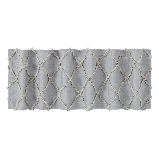 PREMIUM CONSTRUCTION: Our valances are crafted from the finest 100% cotton material, allowing them to last for years to come. Features a 3.25-inch rod pocket for easy hanging and soft white cotton lining.,FARMHOUSE DECOR: Traditional handcrafted style that compliments any farmhouse or country-style home. Our valance features denim grey, soft black, and creme hues.,LIGHT FILTERING: With cotton lining and a close tufted appearance, this geometric valance gently lets in light while providing a little extra privacy. Place in your living room or bedroom to open up and brighten your space.,COORDINATING ACCESSORIES: Pair this farmhouse valance with matching throws, shams, pillows, panels, and quilts from the Frayed Lattice collection.,SIZE: Denim grey, soft black, and creme hues give this valance a modern country feeling while keeping a farmhouse design. The generous size of 16×60 inches is tailored to fit in almost any traditional window of your home.,EASY CARE: To give your cotton valance as many years of quality comfort as possible, place it in the wash on a gentle cycle, and afterward tumble dry low. To capture the true essence of the country, hang the comfortable valance out to dry on a clothesline! Any wrinkles which may appear after drying can easily be ironed out at your convenience.