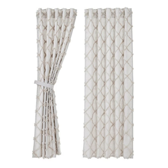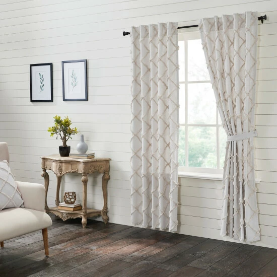 PREMIUM CONSTRUCTION: Our panels are built to last for years to come with durable machine-stitched 100% cotton material. Features include white cotton lining and a 3.25-inch rod pocket for easy hanging, and 2 matching tie-backs.,FARMHOUSE DECOR STYLE: Traditional handcrafted style that compliments any farmhouse or cottage-style home. Our panels feature textured fabric combined with oatmeal tan and soft white hues for a timeless country appeal.,COORDINATING ACCESSORIES: Pair these farmhouse panels with matching throws, shams, pillows, quilts, and valances from the Frayed Lattice collections.,EASY CARE: To give your textured cotton panels as many years of quality comfort as possible, place them in the wash on a gentle cycle, and afterward tumble dry low. If you want to capture the true essence of farmhouse living, let these cottage-style panels hang dry on a line. The 100% cotton fabric is safe to iron for your convenience.,SIZE: Oatmeal tan and soft white hues give these panels a modern farmhouse feeling while keeping a cottage design. The generous size of 84×40 inches is tailored to fit in almost any traditional window of your home.