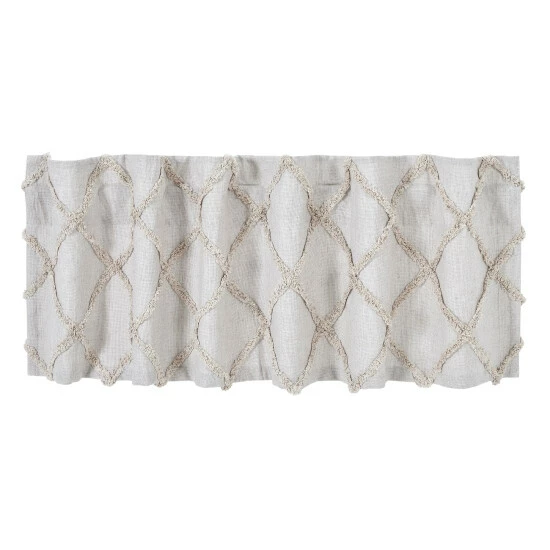 PREMIUM CONSTRUCTION: Our valances are crafted from the finest 100% cotton material, allowing them to last for years to come. Features a 3.25-inch rod pocket for easy hanging and soft white cotton lining.,FARMHOUSE DECOR: Traditional handcrafted style that compliments any farmhouse or cottage-style home. Our valance features oatmeal tan and soft white hues.,LIGHT FILTERING: With cotton lining and a close tufted appearance, this geometric valance gently lets in light while providing a little extra privacy. Place in your living room or bedroom to open up and brighten your space.,COORDINATING ACCESSORIES: Pair this farmhouse valance with matching throws, shams, pillows, panels, and quilts from the Frayed Lattice collections.,SIZE: Oatmeal tan and soft white hues give this valance a modern cottage feeling while keeping a farmhouse design. The generous size of 16×60 inches is tailored to fit in almost any traditional window of your home.,EASY CARE: To give your cotton valance as many years of quality comfort as possible, place it in the wash on a gentle cycle, and afterward tumble dry low. To capture the true essence of the country, hang the comfortable valance out to dry on a clothesline! Any wrinkles which may appear after drying can easily be ironed out at your convenience.
